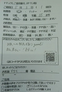 3年ぶり位に夫と来店しました。