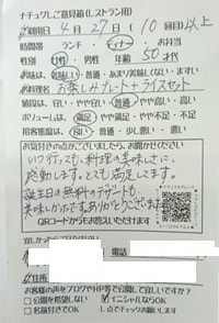 お蔭様で皆で楽しく美味しく食事ができました。ありがとうございます。