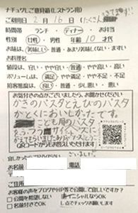 かきのパスタとえびのパスタがとくにおいしかったです。こども用のミートソースパスタをふつうサイズにかえてもらいました。