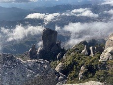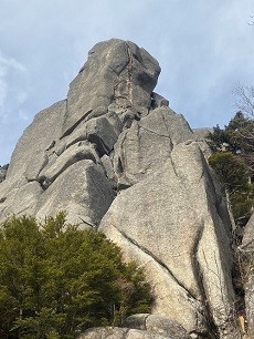 2時間で山頂。山頂直下にある花崗岩の大ヤスリ岩。