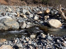 河原は、岩がゴロゴロしていてとても歩きにくいが何とか車にたどり着いたが足や膝が痛いです。