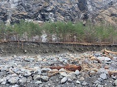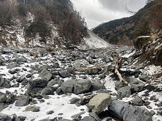 やはり台風の影響で両側山間は崩れている所が多く沢からは大きな石や木が流れ出している。
