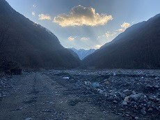 登山道は、最初の数時間は河原を登る。