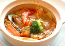 旬の広島産大粒カキが5~6粒入って、白ワイン・オリーブオイルと鷹の爪で辛口に仕上げました。