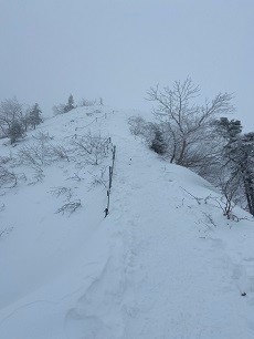 ま~稜線までは行ってみようと登るがやはり段々風が強くなってくる。