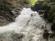 沢沿いのルートを登るが、硫黄のにおいが漂っていて温泉の源泉もある。