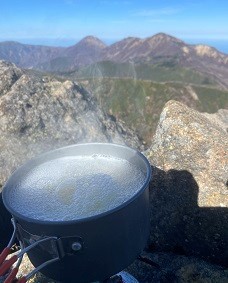 さて山頂パスタを食べようと道具を出したら、なんとガスはあるがバーナーがない?!