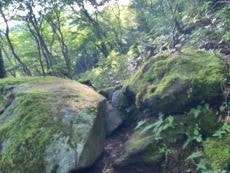 林道みたいな道を少し歩くといよいよ渓谷沿いの登山道になる。