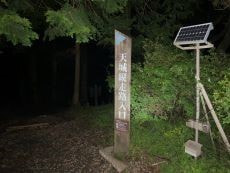 真っ暗の中、ヘッドライトを点け準備して登山届けを出して出発。