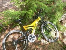 トランジションの所定の場所にバイクをセット、荷物を置いて準備完了。