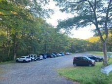 河口湖の指定された駐車場に止め、会場まで荷物を背負ってバイクで行く。
