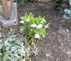 レストランの入り口には、クリスマスローズがいっぱい咲いています (^^♪