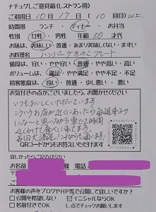 前回食べた時のにんじんバターがとてもおいしかったです。
