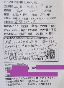 パスタメニューを取り入れてもらえると嬉しいです。