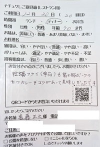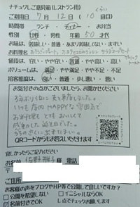 お蔭様で皆で楽しく美味しく食事ができました。ありがとうございます。