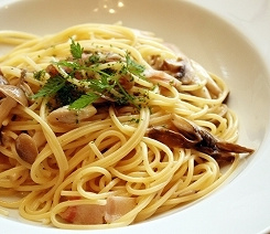 、舞茸、マッシュルームを甲州梅でさっぱり仕上げた和風パスタ