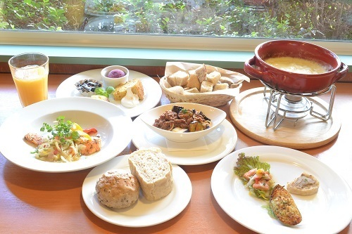 ●セット/パン以外に海老やソーセージ、野菜付(チーズ3割増量)