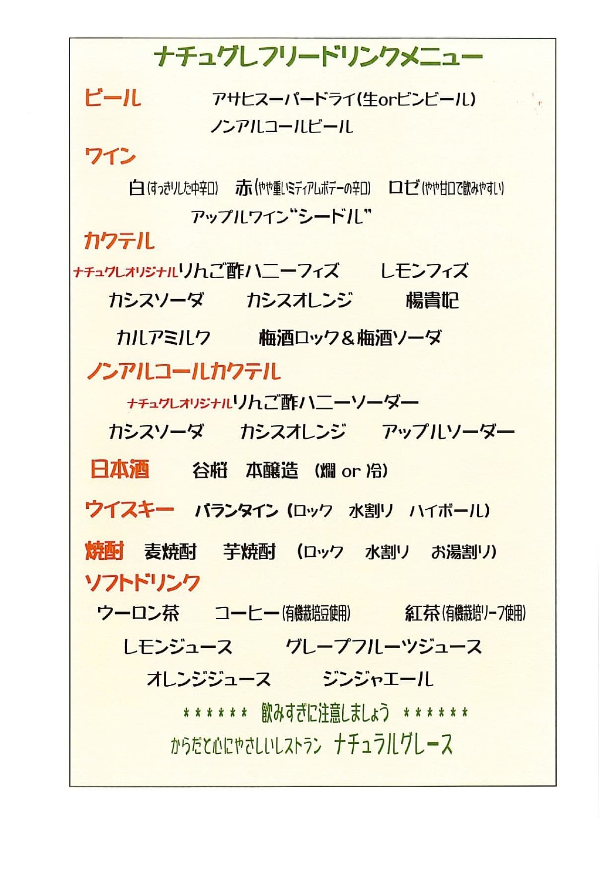 安心手作りスイーツメニューの中から、お好きなスイーツをお選びください。(パフェは、+200円になります。ミニパフェは除く) - ソフトドリンク