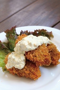 自家製無添加タルタルソースと有機濃厚ソース付きです!