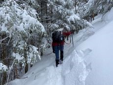 また、急な登りはジグザクの登山道を登るが、下りは雪があると一直線に降りられるので早いし楽だ!
