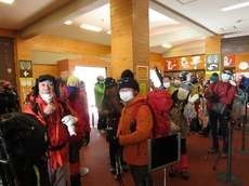 登山者のもいれば、スノボーを担いで登っている人やスキーで登っている人もいていろいろだ。