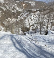 登山口までは、途中雪崩で道路に雪が広がっていたがパジェロなので何無