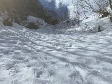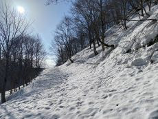 この先は、夏ルートでなく雪の上を直登するルートを選ぶ。