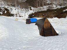 帰りもここを通るので、明日のランチのカレーの材料を小屋の隅に置い