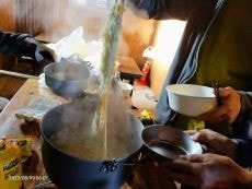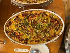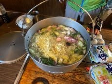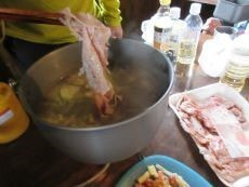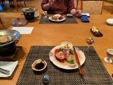 帰ってあまりきれいではない温泉に入って夕飯を頂く。