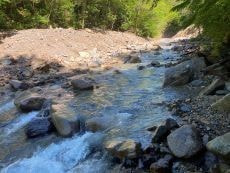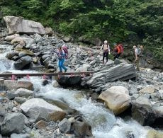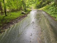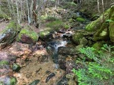 沢沿いを歩いているので川の音がいつも聞こえているし、沢の水がところ