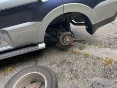 駐車場に車を止めてバイクを組み立てトランジットにセット。