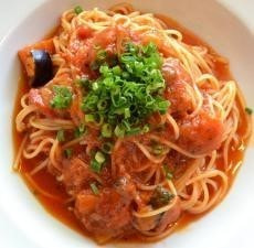 本日のランチは、旬のなす入地鶏のボロネーゼパスタ。