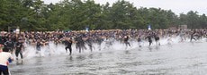 300名一斉にスタートだが、私は最後の方で泳ぎ出す。