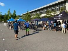 ウエットスーツを脱ぎ、ヘルメット・バイクシューズを履いて出発。