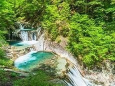 「日本の滝百選」にも選ばれた名瀑・七ツ釜五段の滝を筆頭に、