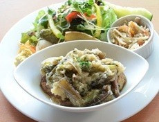 メインは、春野菜クリームパスタ。