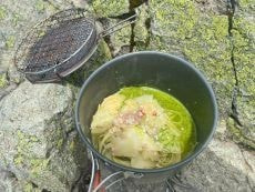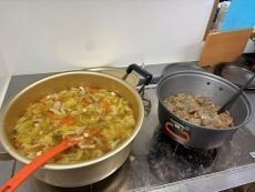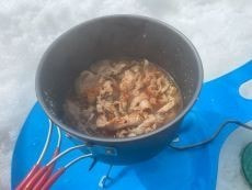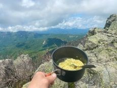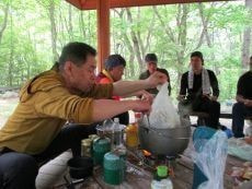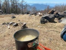 *最近、皆さんが山頂でいろいろ作って頂いておりいつも豪華なランチになっています (^^♪