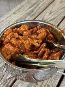 後は、アヒージョを3回に分けて大きな鉄の容器で揚げる!