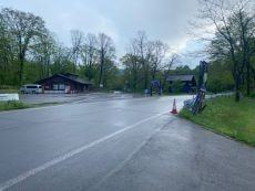 故と工事で方側通行なのでここを通るだけで100分かかるとの事!