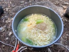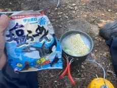 ここで朝ごはんの塩ラーメンを作る事に。