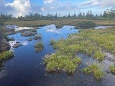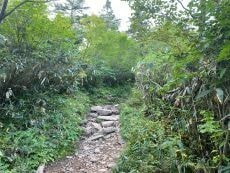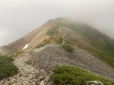 稜線の笹平に出ても山頂がガスで見えない。